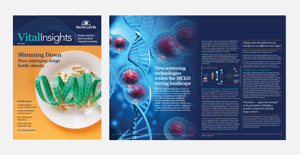 Welcome to our latest edition of Vital Insights. Here we’ve put together a collection of articles covering some of the major issues of the day with a specific focus on how they could impact mortality and morbidity. From emerging drugs which battle obesity to a review of the effectiveness of new blood tests both to detect cancer and to help slow down Alzheimer’s, we hope these insights help keep you up to date with the latest in medical research.